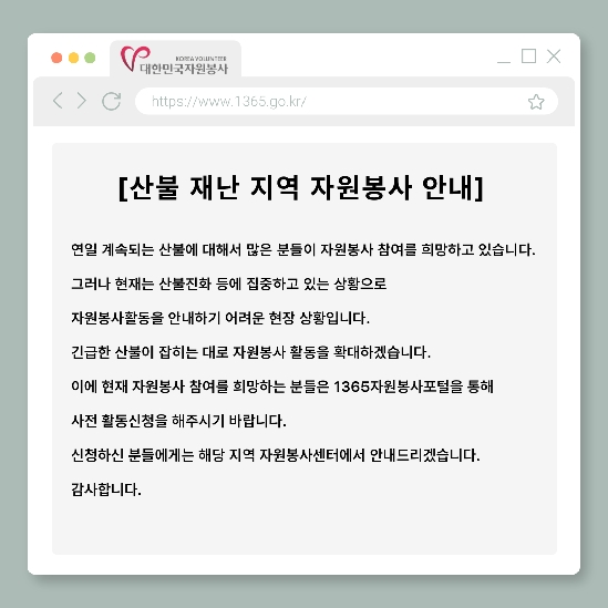 [산불 재난 지역 자원봉사 안내]