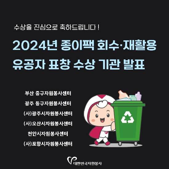 2024년 종이팩 회수•재활용 유공자 표창 수상 기관 안내