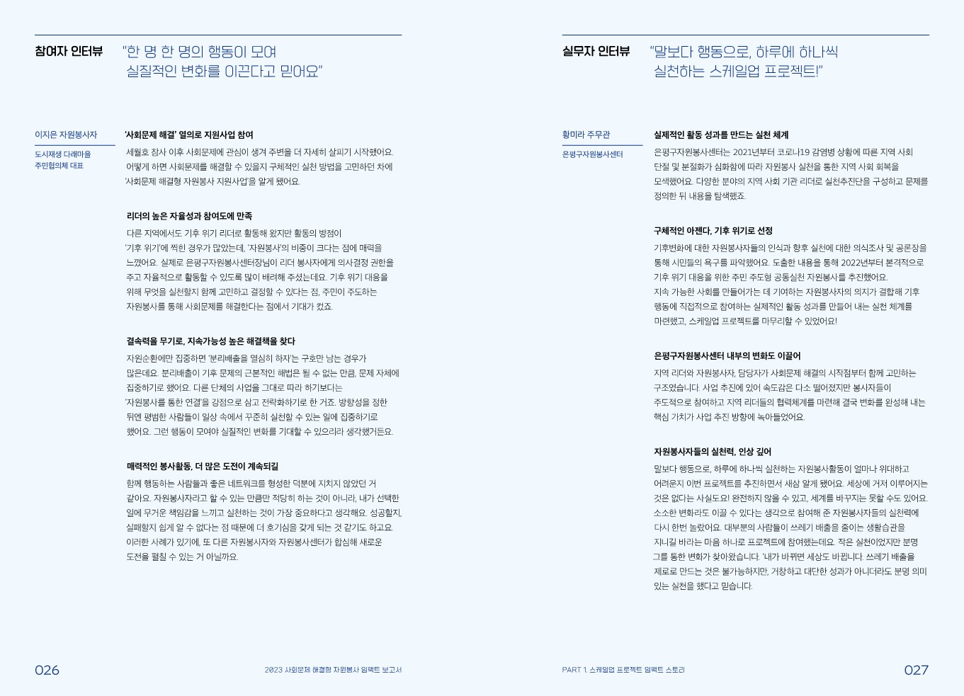 임팩트 스토리 [스케일업 프로젝트] 지역 기반 그린 인프라 확장을 통한 ‘Net-Zero 그린 은평’ 관리자 2024.02.08 408 이전글 [스케일업 프로젝트] 안녕, 대구! 시민이 안심하는 기후 위기 적응 도시 대구 만들기 목록 다음글 [안녕캠페인] 자원봉사 일감도출 리빙랩 ‘소도리공론장’ & ‘공.공.공프로젝트’