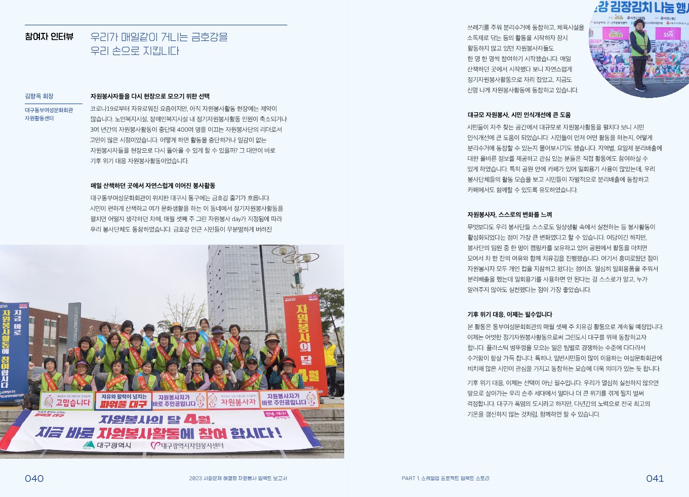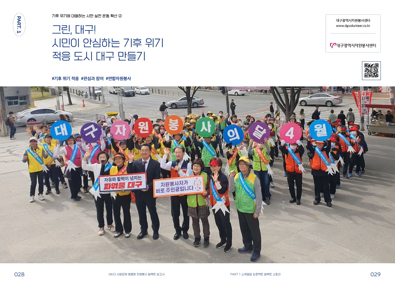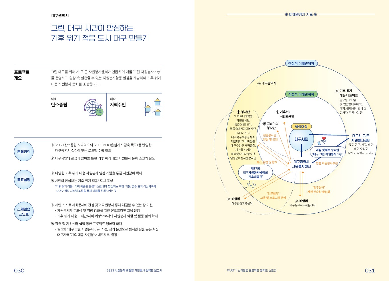 임팩트 스토리 [스케일업 프로젝트] 안녕, 대구! 시민이 안심하는 기후 위기 적응 도시 대구 만들기 관리자 2024.02.08 416 이전글 [스케일업 프로젝트] 3-3 자원순환마을 프로젝트(다시 생각하기, 다시 사용하기, 다시 활용하기) 목록 다음글 [스케일업 프로젝트] 지역 기반 그린 인프라 확장을 통한 ‘Net-Zero 그린 은평’