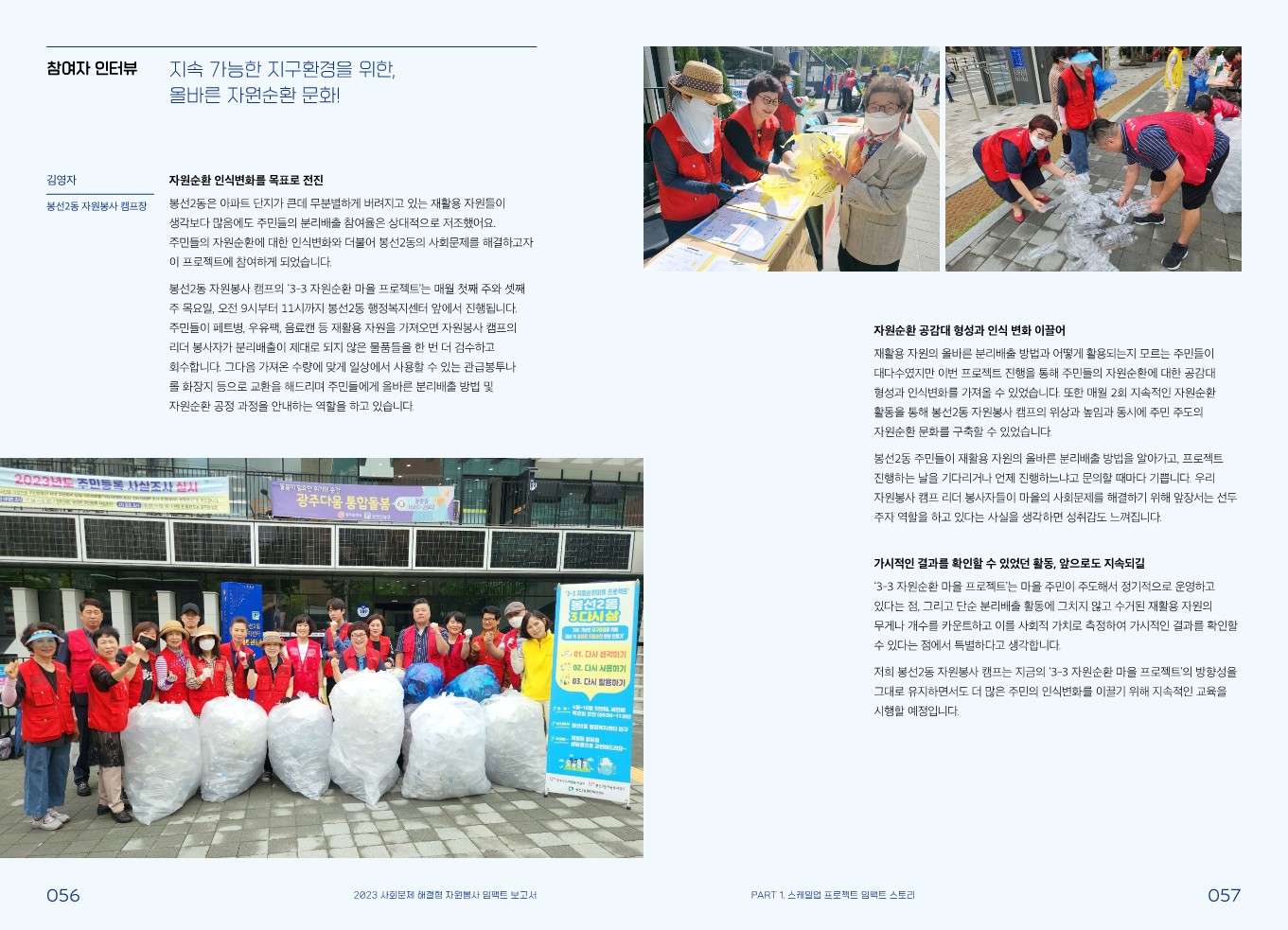 임팩트 스토리 [스케일업 프로젝트] 3-3 자원순환마을 프로젝트(다시 생각하기, 다시 사용하기, 다시 활용하기) 관리자 2024.02.08 432 이전글 [스케일업 프로젝트] 동구동락(東區同樂) 목록 다음글 [스케일업 프로젝트] 안녕, 대구! 시민이 안심하는 기후 위기 적응 도시 대구 만들기