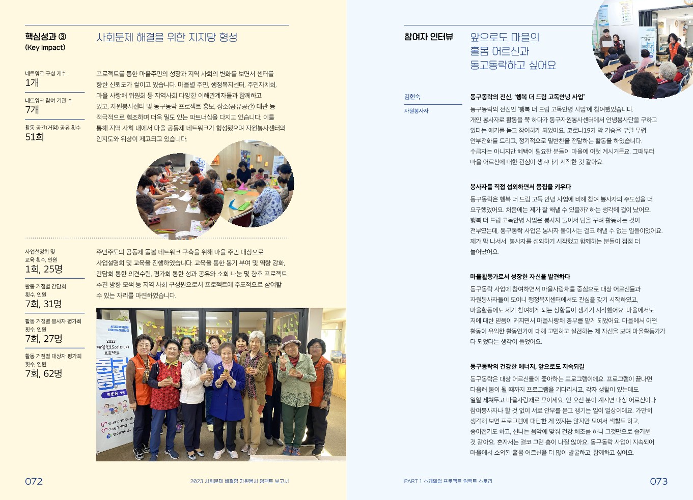 임팩트 스토리 [스케일업 프로젝트] 동구동락(東區同樂) 관리자 2024.02.08 422 이전글 [스케일업 프로젝트] 찬찬찬(饌) 나눔 용기(容器)내 v3 지역사회 돌봄 리빙랩 목록 다음글 [스케일업 프로젝트] 3-3 자원순환마을 프로젝트(다시 생각하기, 다시 사용하기, 다시 활용하기)