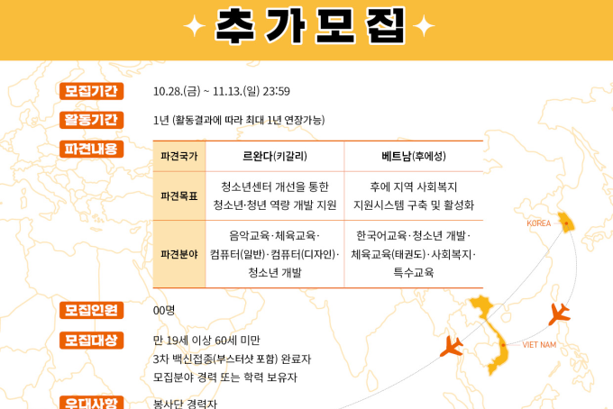 [모집] KOICA프로젝트봉사단(르완다, 베트남) 추가모집 안내