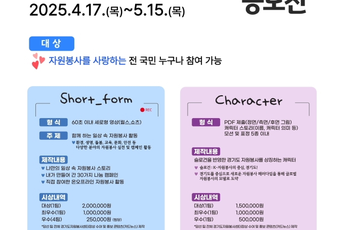 [홍보] K-자원봉사의 중심, 경기도! 숏폼&캐릭터 공모전 참여 안내