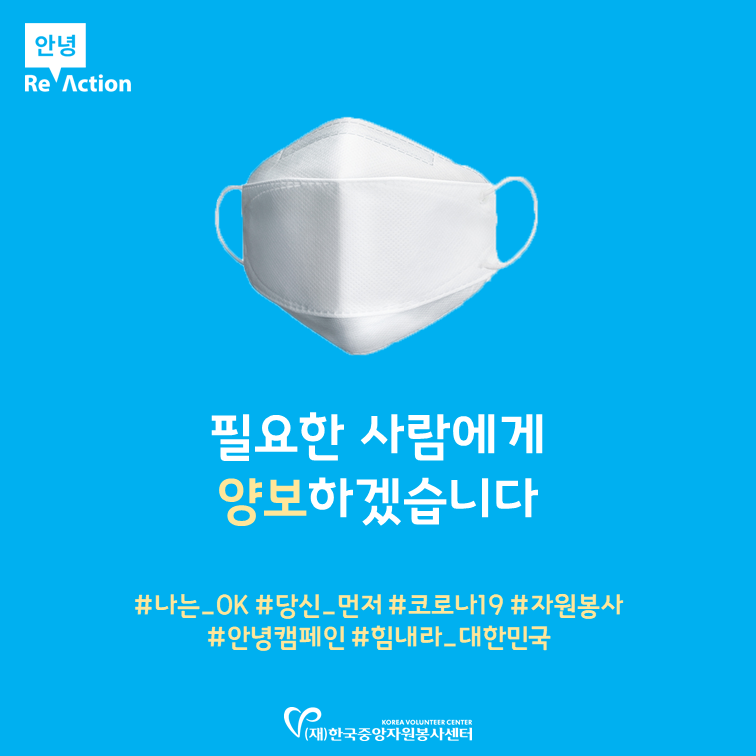정보공유 [공유] 코로나19 관련 SNS 캠페인 참여 이미지 #2 관리자 2020.03.11 1718 이전글 [홍보] 2020 성동구 몽골해외봉사 관련 카카오 같이가치 모금함 참여 안내 목록 다음글 [홍보] 제5회 농촌재능나눔 단체,개인 수상자 모집공모