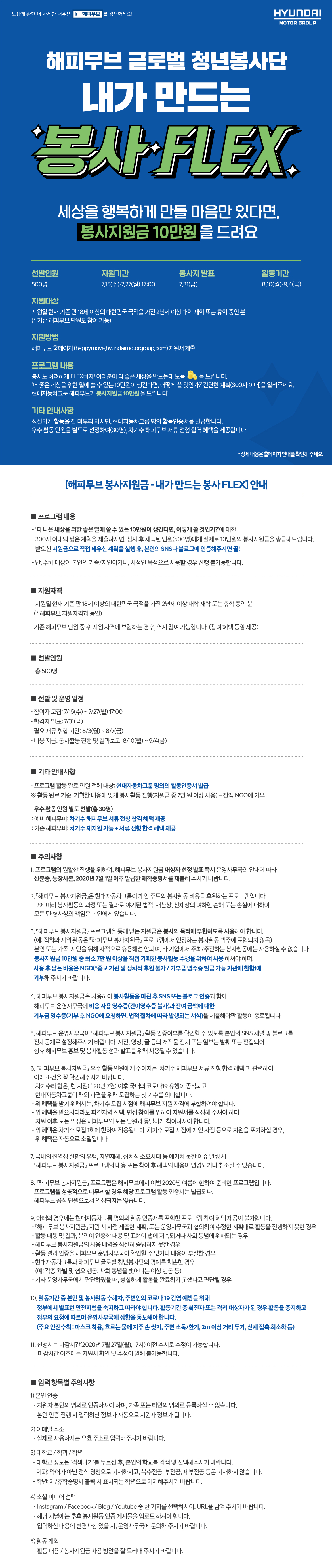 총 500명에게 각 10만원의 봉사지원금을 드립니다 :)