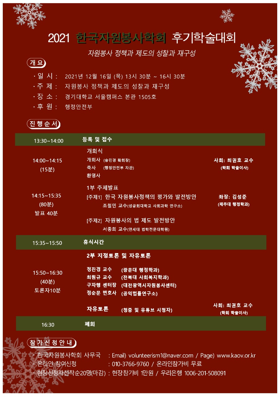정보공유 [홍보] 2021년 (사)한국자원봉사학회 후기 학술대회 참여 안내 관리자 2021.12.15 1600 이전글 [홍보] 설 명절맞이 소외계층을 위한 1인 1나눔 실천하기 목록 다음글 [홍보] 「2021 제주시 자원봉사 만남 주간」 응원 댓글 참여