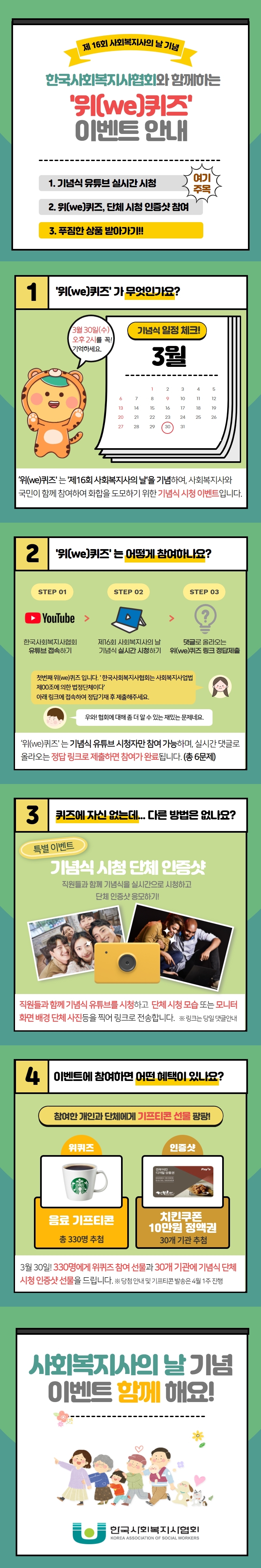 정보공유 [홍보] 제16회 사회복지사의 날 기념식 이벤트 카드뉴스 관리자 2022.03.22 1446 이전글 [홍보] 사랑의열매 2022년 신규 기획사업 공모 시행 안내 목록 다음글 [홍보] 제14회 전국 장애인 문학 공모전 안내