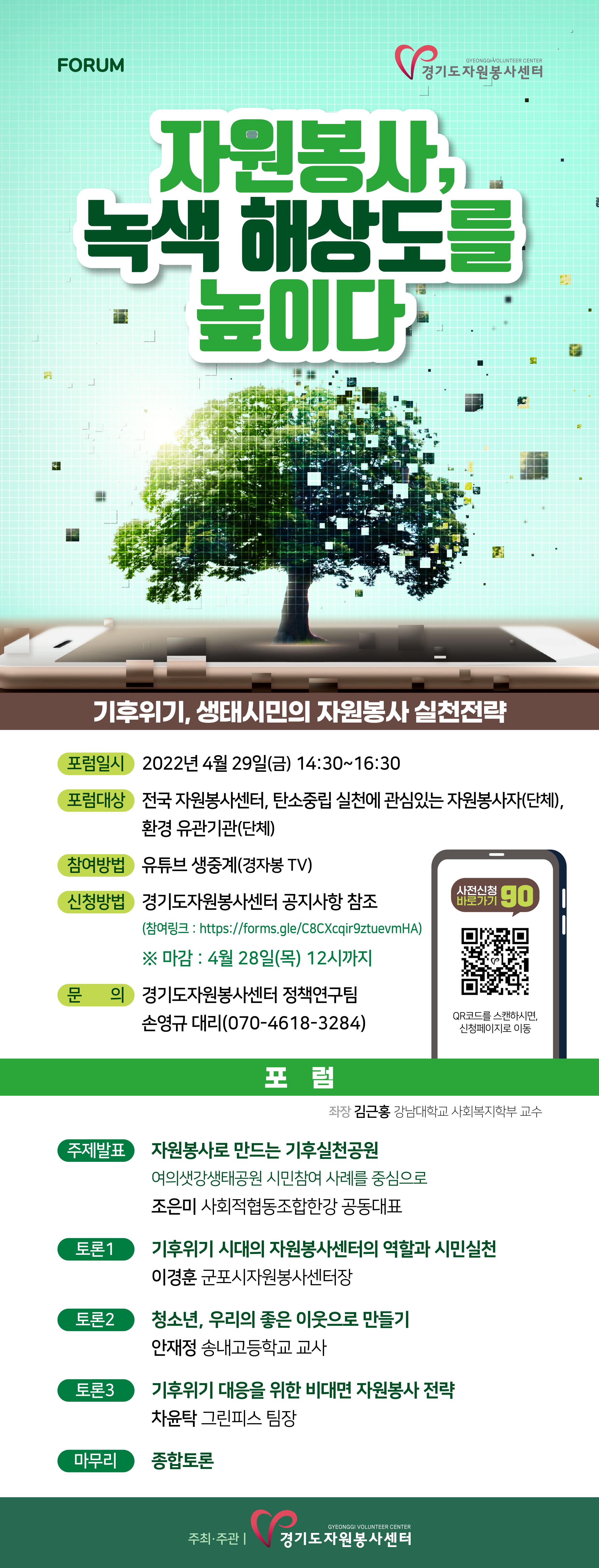 정보공유 [홍보] 경기도자원봉사센터 주최 2022년 '자원봉사, 녹색 해상도를 높이다' 포럼 참여 안내 관리자 2022.04.14 1381 이전글 [홍보] 제24회 전국중고생 자원봉사대회 목록 다음글 [홍보] 2022 푸르덴셜 조혈모프렌즈 1기 모집 안내