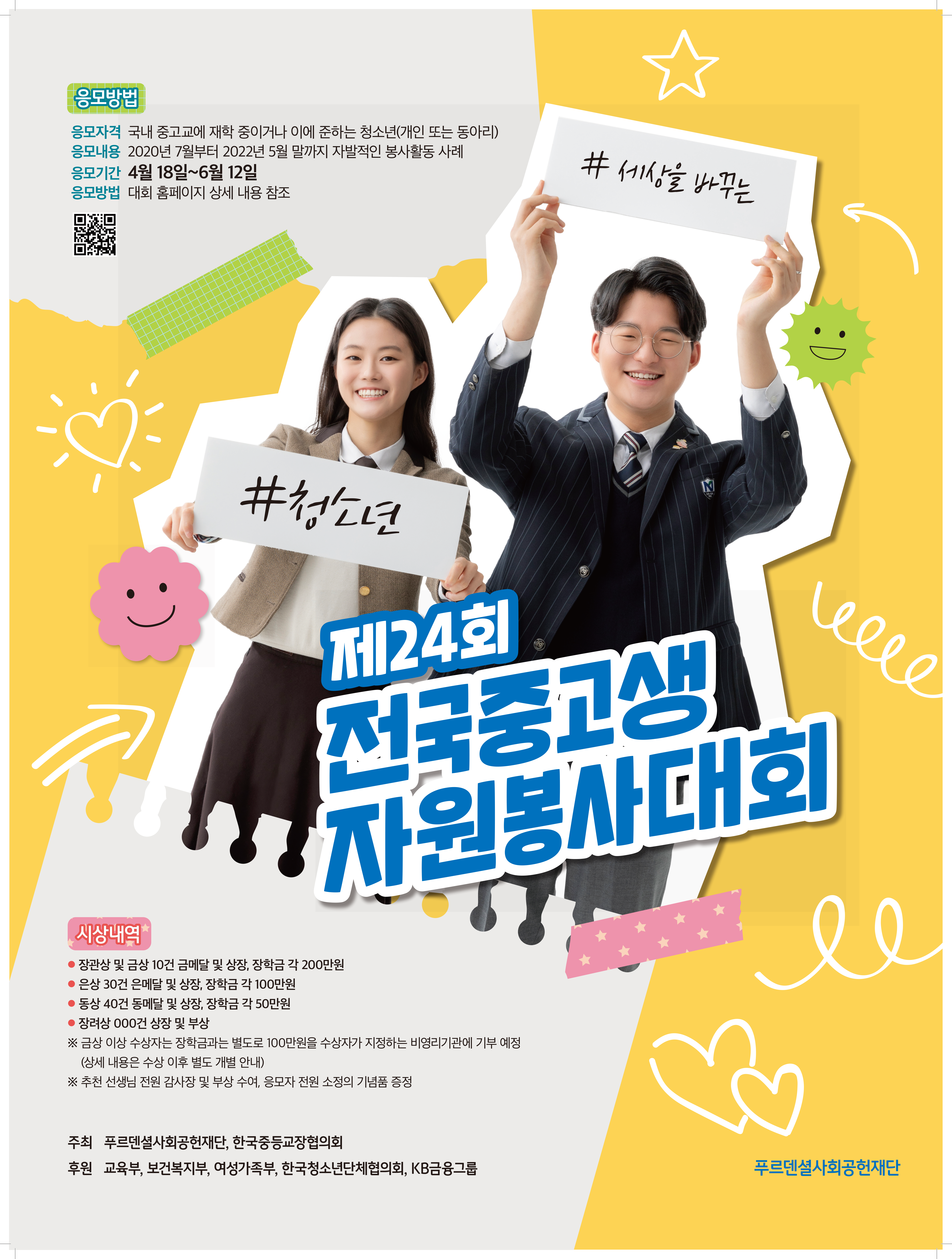 정보공유 [홍보] 제24회 전국중고생 자원봉사대회 관리자 2022.04.27 1432 이전글 [홍보] 제5회 대한민국주거복지문화대상 목록 다음글 [홍보] 경기도자원봉사센터 주최 2022년 '자원봉사, 녹색 해상도를 높이다' 포럼 참여 안내