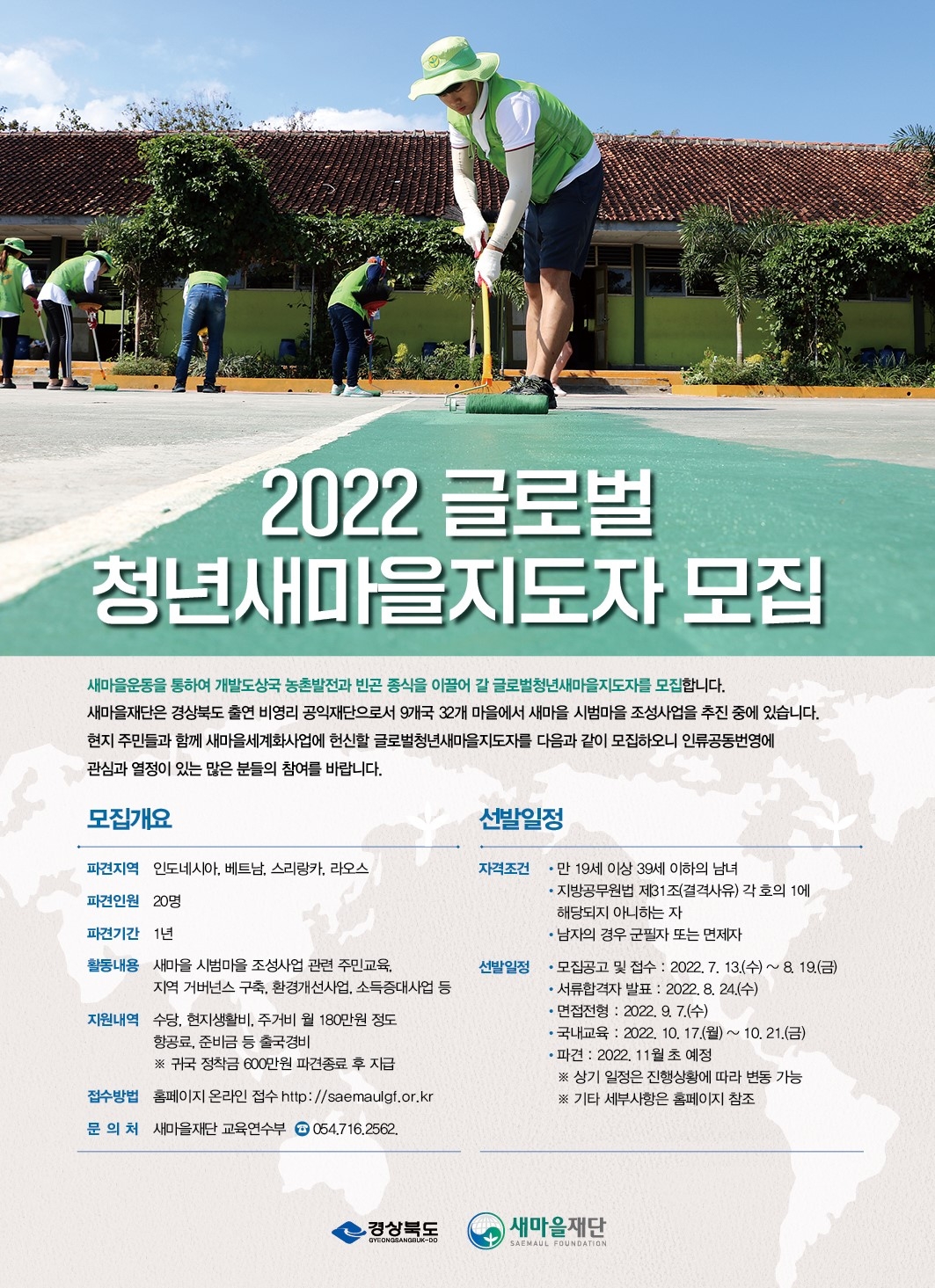 정보공유 [홍보] 2022 글로벌청년새마을지도자 추가 모집 안내 관리자 2022.07.14 1463 이전글 [홍보] 결식아동을 위한 1인 1나눔 계좌로 사랑나눔 실천하기 안내 목록 다음글 [홍보] 그린피스 플콕 참여자 모집