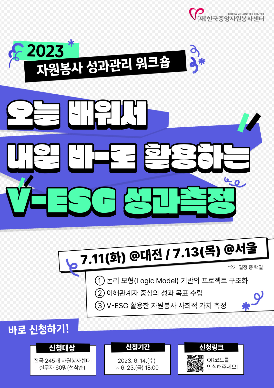 정보공유 [홍보] 오늘 배워서 내일 바로 활용하는 'V-ESG 자원봉사 성과측정 워크숍’ 참여자 모집 (마감) 관리자 2023.06.14 1331 이전글 [공유] '세상을 바꾸는 시간 15' X '대한민국 자원봉사'가 함께 '세상을 바꾸는 시간V'를 만들었습니다! 목록 다음글 [모집] 「그린피스 플콕조사」 참여 자원봉사자 모집 안내