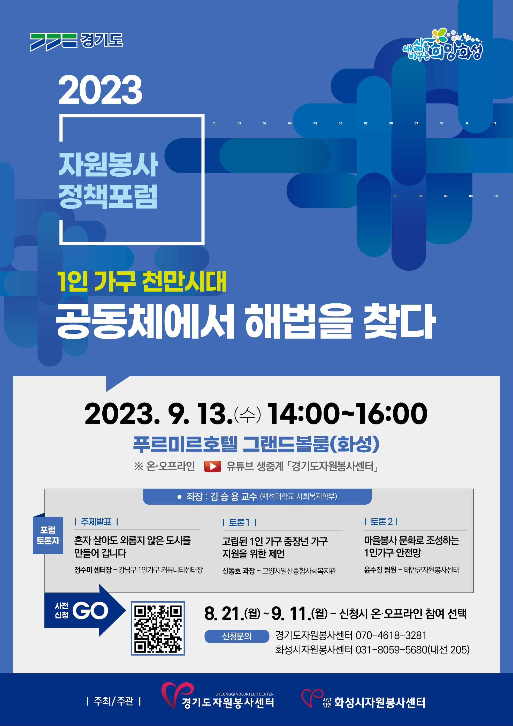 정보공유 [홍보] 자원봉사 정책포럼 「1인 가구 천만시대, 공동체에서 해법을 찾다」 안내 관리자 2023.08.22 1409 이전글 [홍보] 자원봉사관리사 2급 시범교육 참가자 모집 안내 목록 다음글 [홍보] 경기도 자원봉사센터 탄소중립 자원봉사 토론회 「쓰레기의 또 다른 이름 자원 By 봉사」 안내