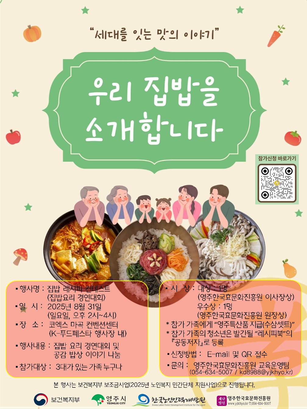 정보공유 [홍보] 보건복지부 공모사업 '우리 집밥을 소개합니다' 행사 안내 관리자 2025.08.12 163 ★ 신청기간 연장 : (기존) 2025년 07월 15일 ~ 08월 10일 → (변경) 2025년 07월 15일 ~ 08월 20일 이전글 [홍보] 국제 철인3종 경기 '2025 아이어맨 구례 코리아 대회' 자원봉사자 모집 안내 목록 다음글 [홍보] 2025년 하반기 이달의 과학기술인상 선정계획 공고 안내