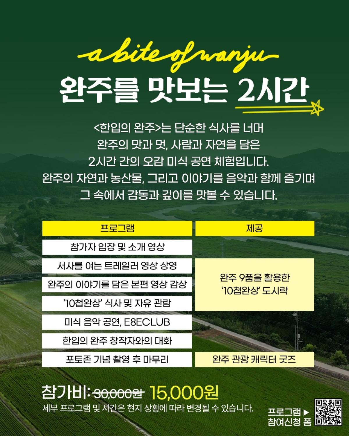 정보공유 [홍보] 2025 완주 미식관광 프로그램 '한입의 완주' 안내 관리자 2025.10.16 261 이전글 [홍보] 2027 충청 유니버시아드대회 자원봉사자 명칭 선호도 조사 안내 목록 다음글 [홍보] 자원봉사자 가족 캠프 모집 안내