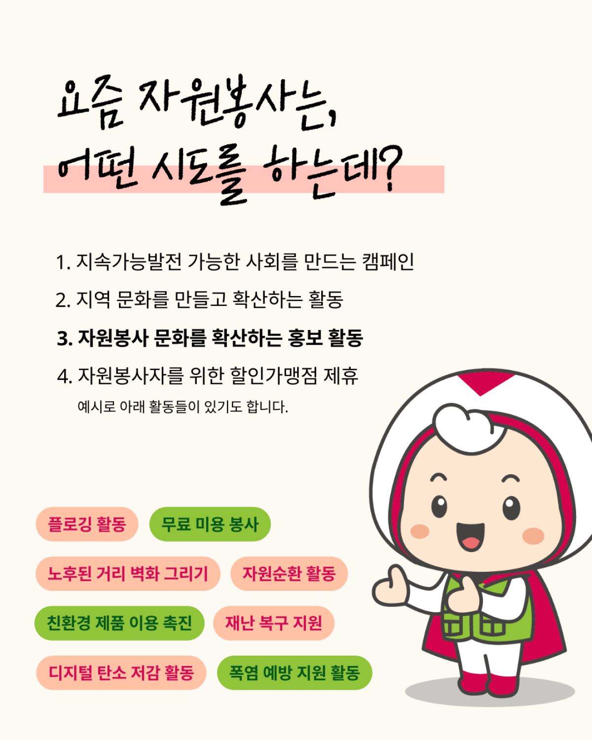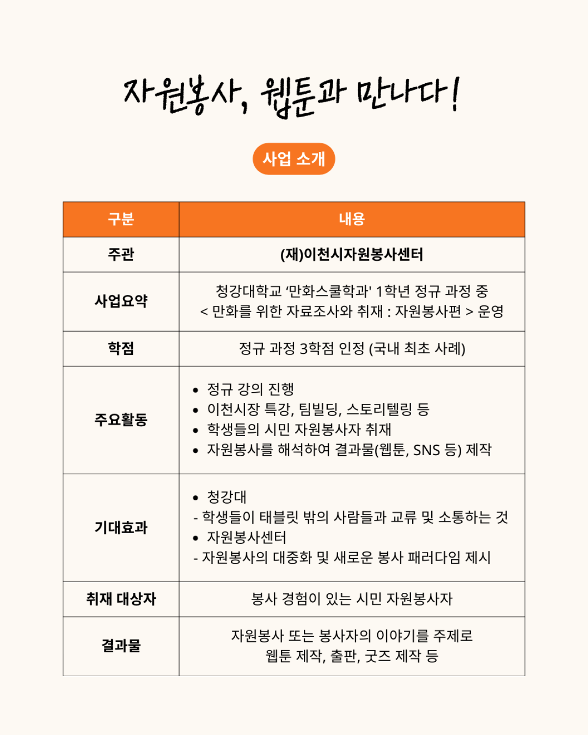 정보공유 [홍보] 이천시자원봉사센터, <자원봉사! 웹툰과 만나다!> 프로그램 봄학기 결과물(웹툰) 공유 관리자 2025.12.10 248 이전글 [홍보] 2026 경기도청년봉사단 8기 운영 및 모집 안내 목록 다음글 [홍보] 굿바이 2025년, 광주고향사랑기부 BIG 이벤트 안내