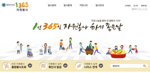 ['1365 자원봉사센터'는 전국의 지자체, 대학, 고등학교 등에서 자원봉사와 관련해 연계 하는 사이트로 한국중앙자원봉사센터에서 운영한다. 이곳에서도 봉사 참여와 모집기관 조회 등이 가능하다.