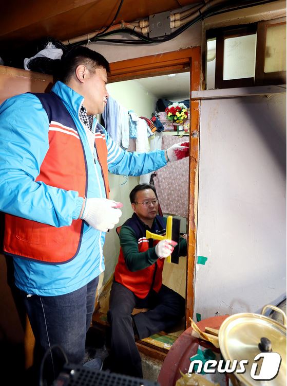 김부겸 행정안전부 장관과 자원봉사 홍보대사인 양준혁 야구 해설위원 등과 함께 24일 오전 서울 중구 남대문로 쪽방촌을 찾아 동절기 한파 대비 봉사활동을 펼치고 있다. 김 장관 등은 쪽방촌 낡은 문풍지와 방충망 제거 작업과 함께 창틀과 문틀을 청소와 함께 문풍지와 에어캡을 부착하고, 주민들에게 양말‧핫팩 세트를 전달했다. 이날 봉사활동에는 전직 야구선수인 양준혁 해설위원, 작곡가 윤일상, 방송인 박마루, 공연예술가 팝핀준호, 아나운서 이나래씨 등 자원봉사 홍보대사들이 함께 했다