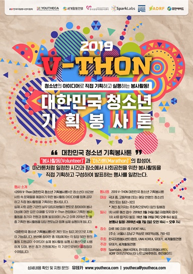 ‘2019 V-THON 대한민국 청소년 기획봉사톤’이 오는 4월 7일 서울 강남구 역삼동 마루 180 이벤트홀에서 진행된다.