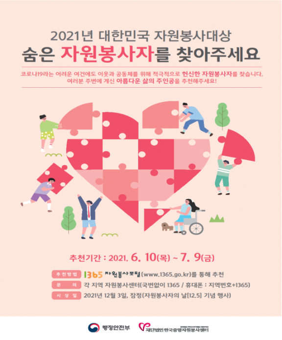 행안부, '2021 대한민국 자원봉사대상' 후보자 접수