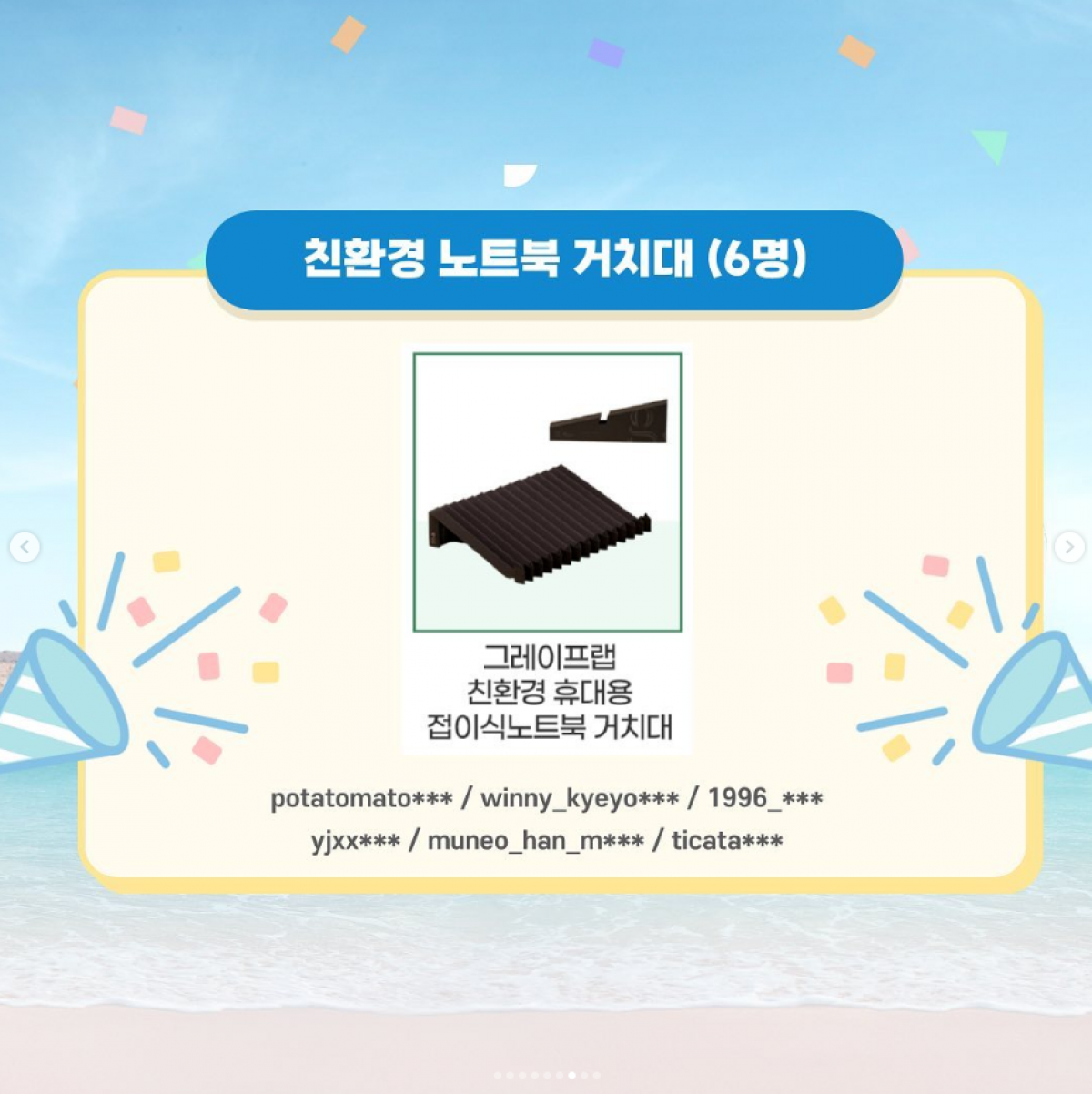 당첨자 분들께서는 인스타그램 DM을 확인하셔서 경품발송을 위한 정보입력과 개인정보 활용동의를 해주시길 바랍니다.