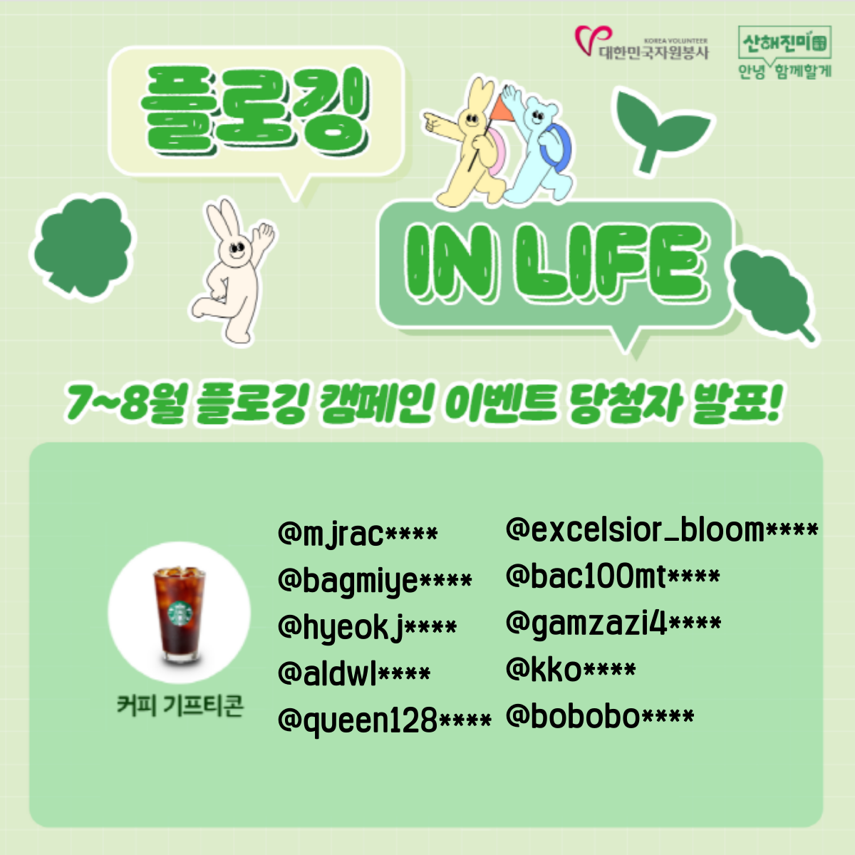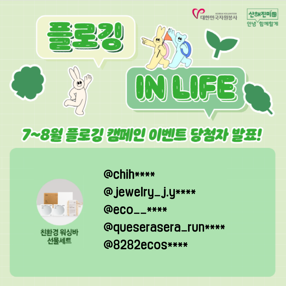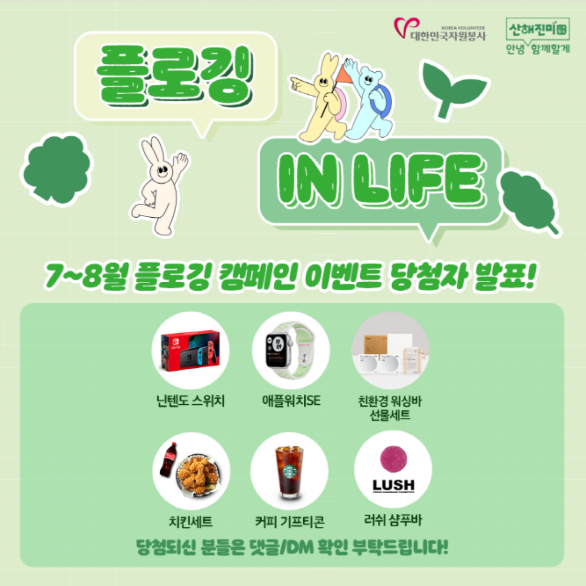 당첨자 분들께서는 인스타그램 DM을 확인하셔서 경품발송을 위한 정보입력과 개인정보 활용동의를 해주시길 바랍니다.