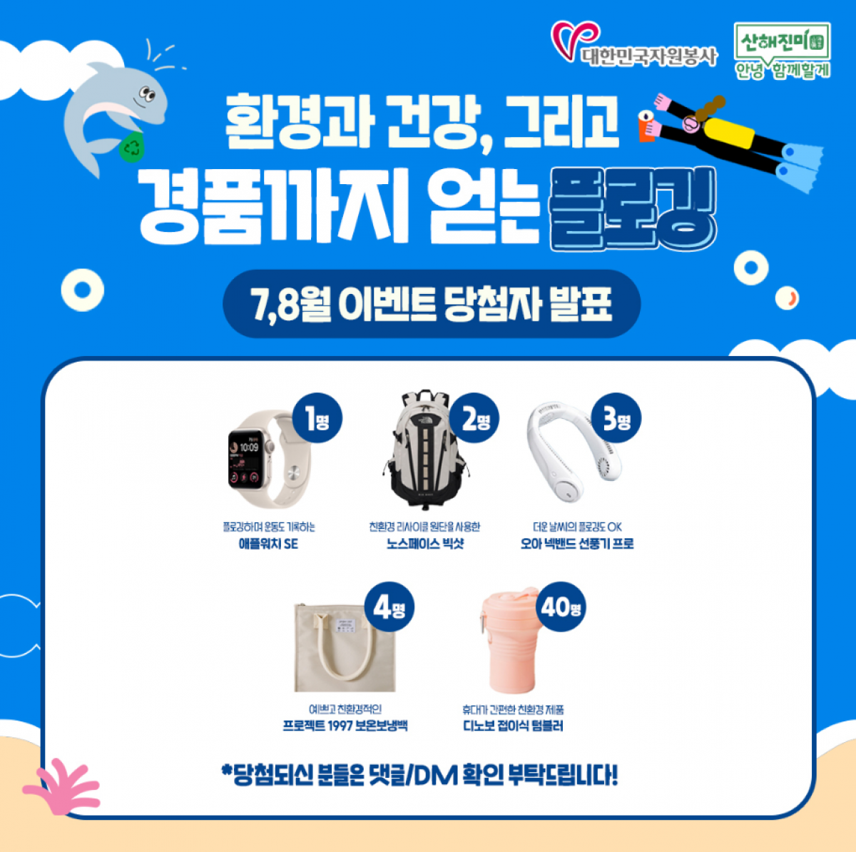 이번 플로깅인증 이벤트의 당첨자는 인스타그램을 통해 안내를 드렸는데요