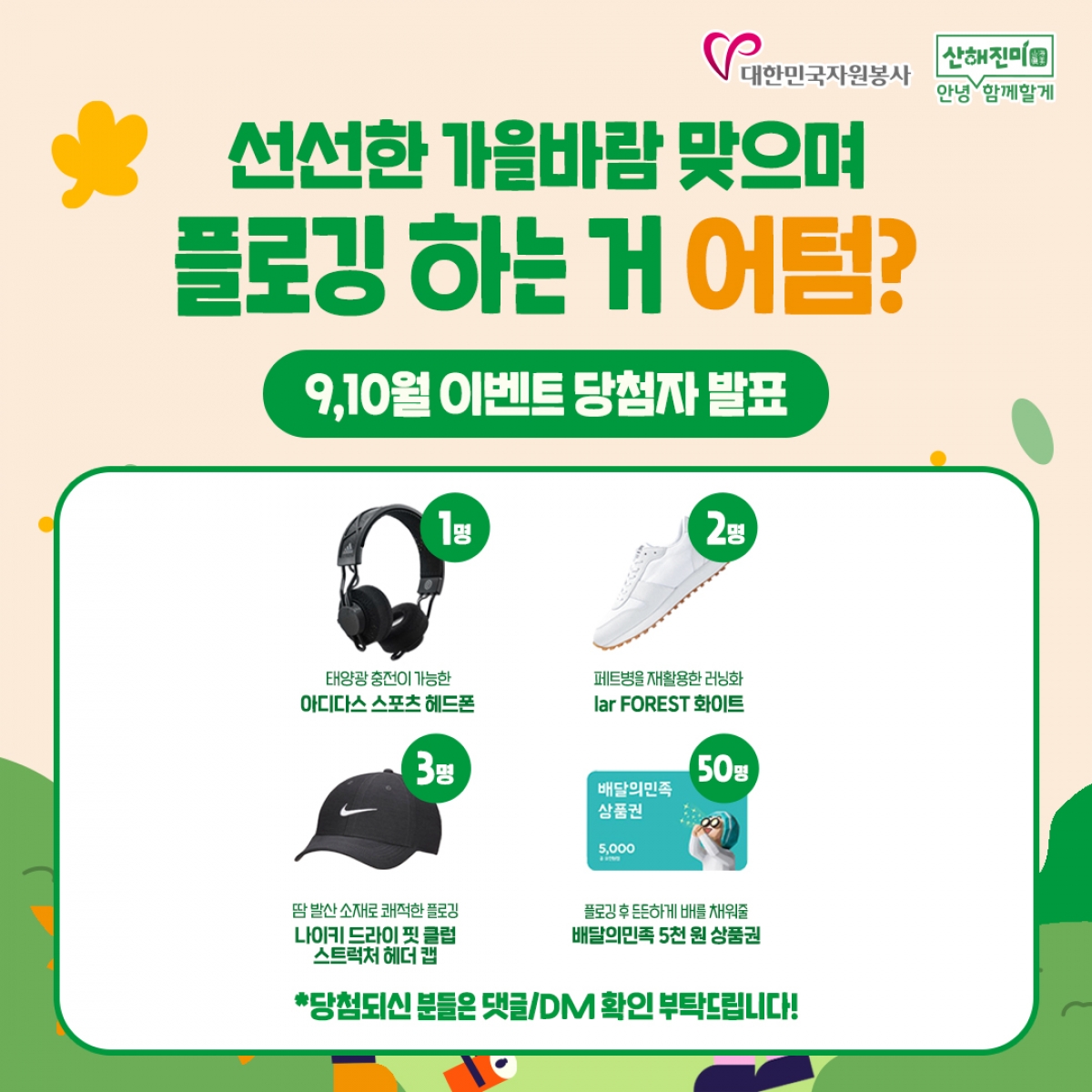 플로깅 인증 이벤트의 당첨자는 인스타그램을 통해 안내를 드렸는데요