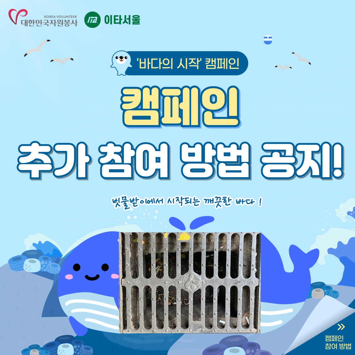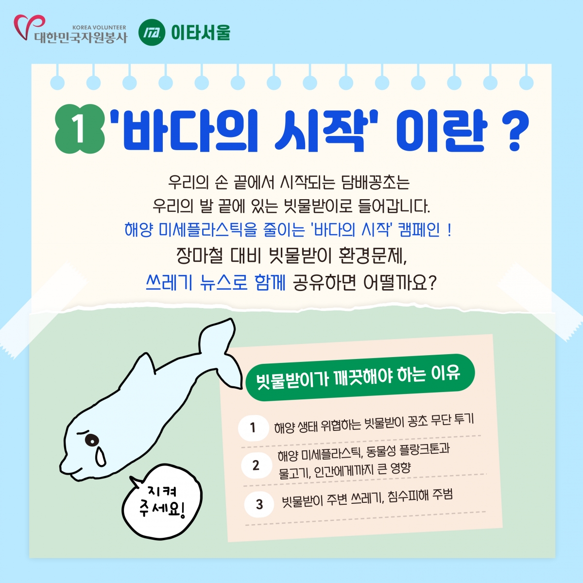 공지사항 [공지] 빗물받이에서 시작되는 깨끗한 바다, 바다의 시작 캠페인 추가 참여방법 안내 2024.06.18 관리자 이전글 [공지] 안내 목록 다음글 [공지] 자원봉사아카이브 개선을 위한 설문조사