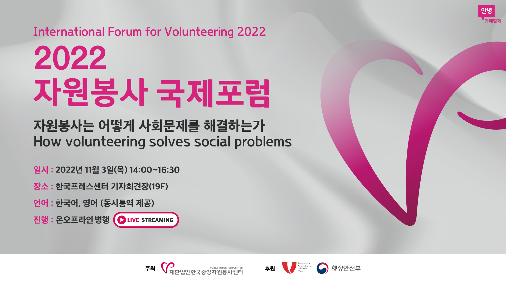 2022 자원봉사 국제포럼 '자원봉사는 어떻게 사회문제를 해결해야하는가' 영상 업로드 안내
