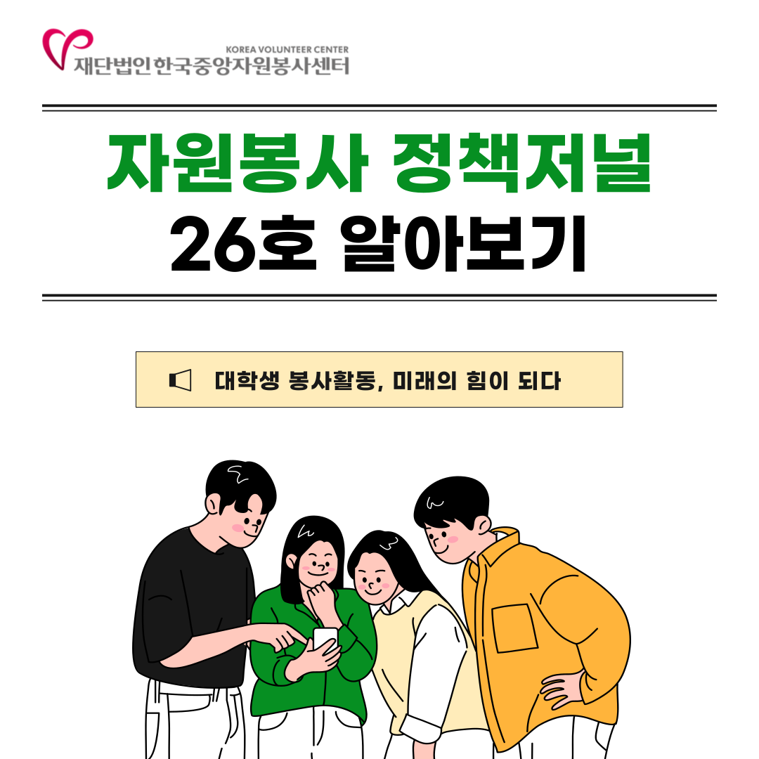 26호 저널의 주제는 '대학생 봉사활동, 미래의 힘이 되다'입니다.