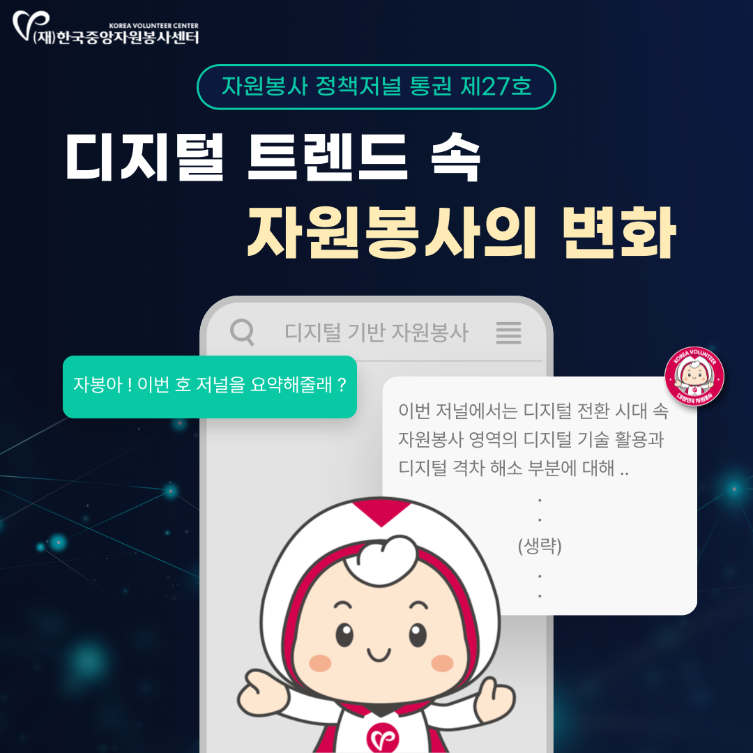 이번 호에서는 팬데믹 이후 디지털 전환 시대 속 자원봉사의 변화와 현장 사례를 살펴보고,