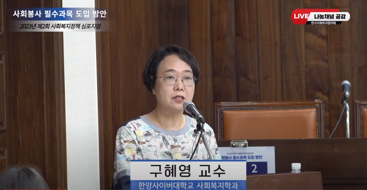 2023년 제2회 사회복지정책 심포지엄 「사회봉사 졸업필수과목 도입 방안」 개최