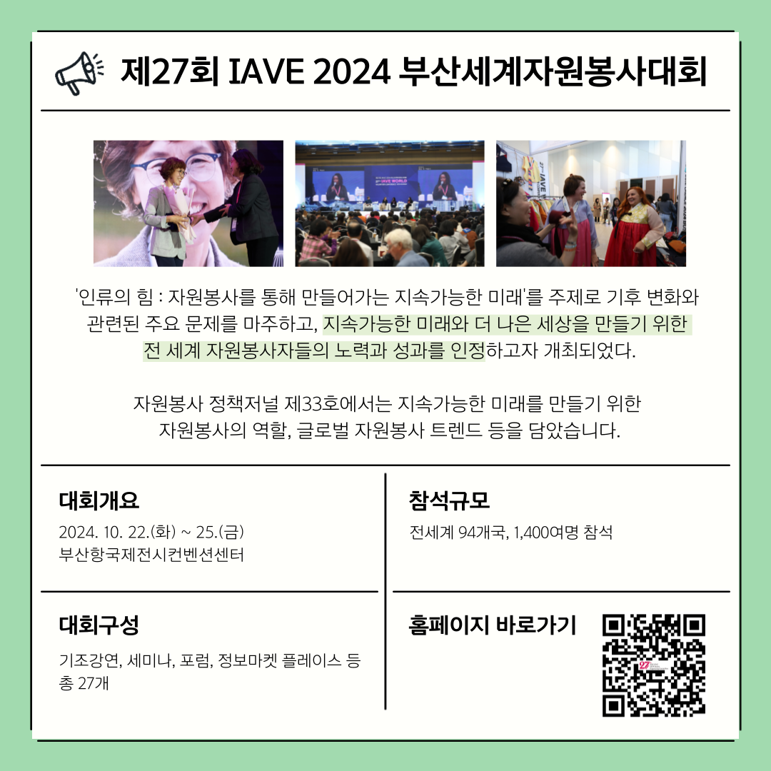 [자원봉사 정책저널 제33호 특별판] 제27회 IAVE 2024 부산세계자원봉사대회 '인류의 힘, 자원봉사를 통해 만들어가는 지속가능한 미래'