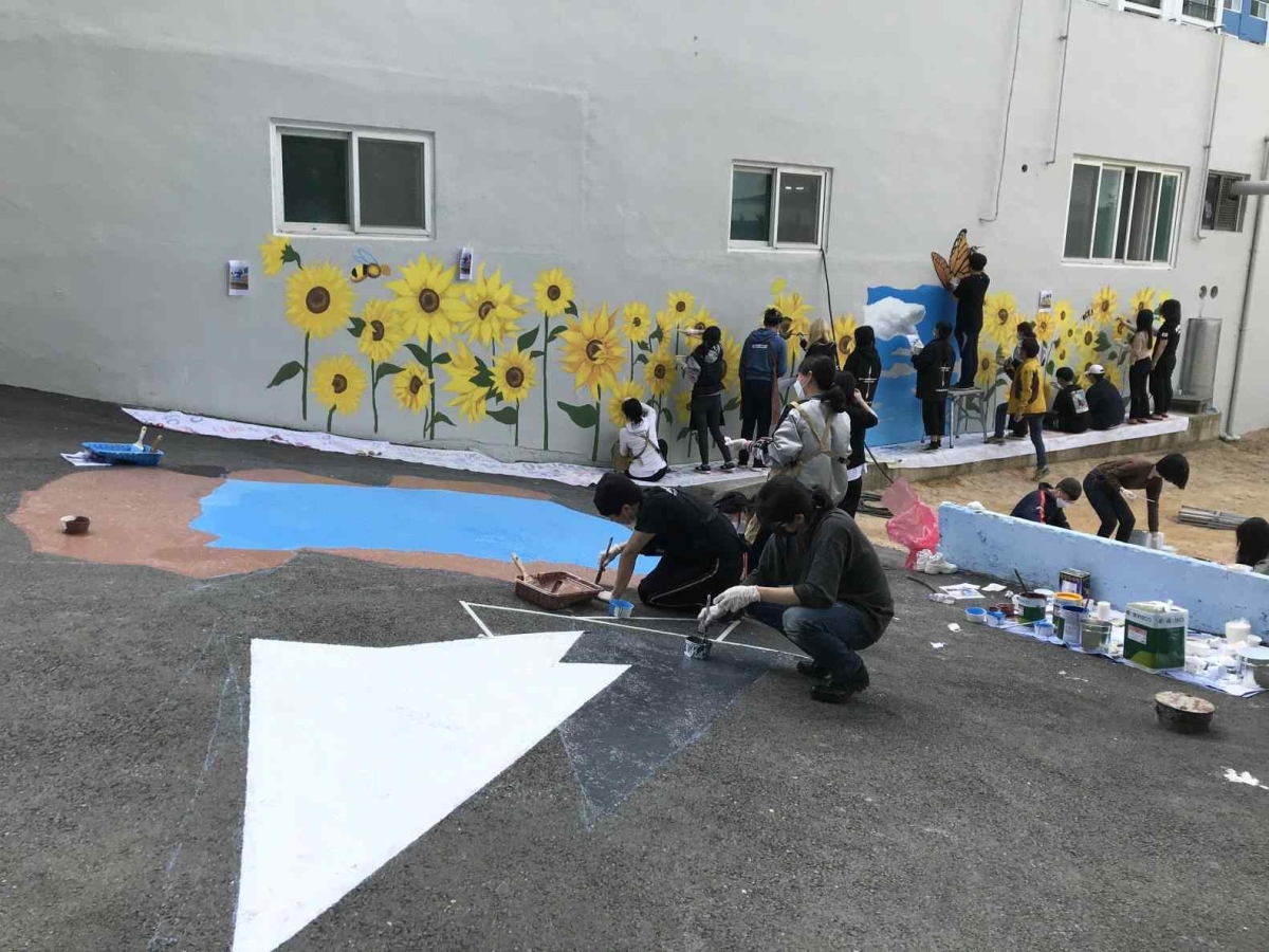 - 마을이 주도하여 벽화거리를 만들고, 태양광가로등을 설치합니다.