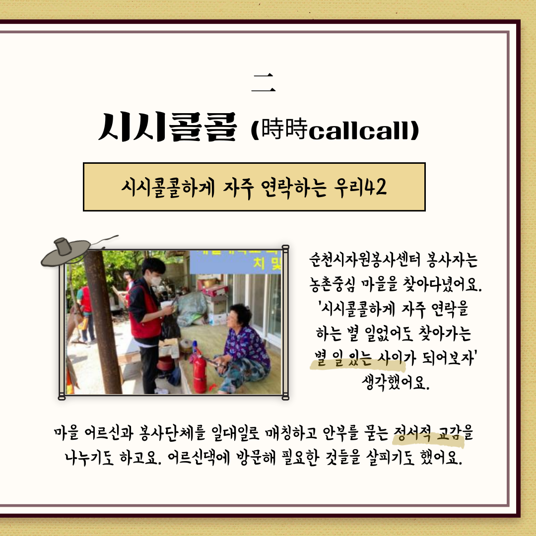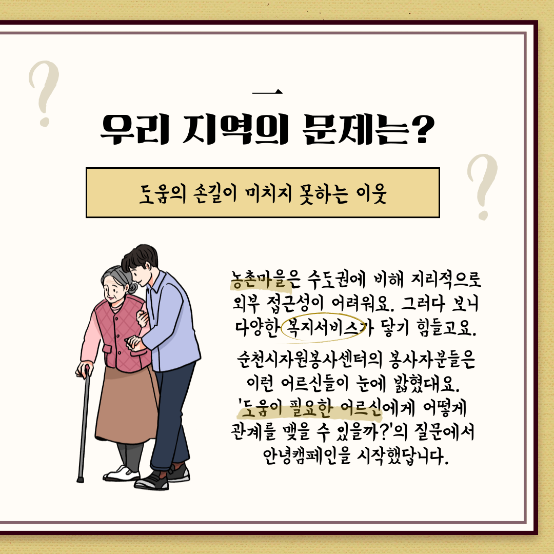 이러한 문제를 해결하고자 ✨순천시자원봉사센터✨에서 안녕캠페인으로 활약하고 있더라구요.