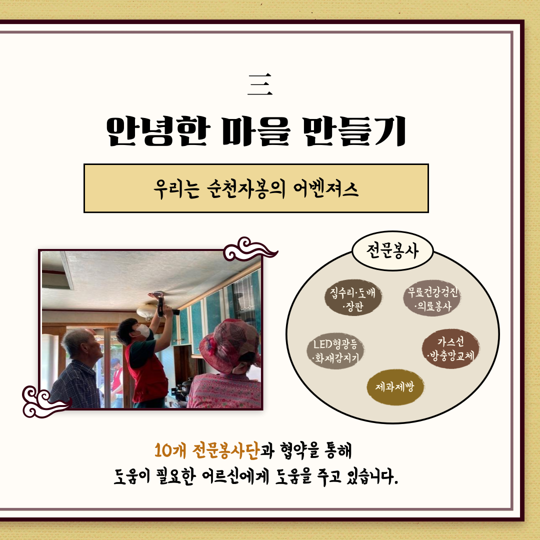 전문봉사단과 협업🙌해서 다양한 복지혜택을 지원하고 있어요!