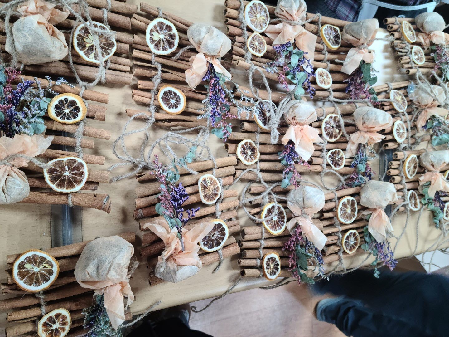 시나몬스틱 가랜드를 함께 만들고 나누었습니다.