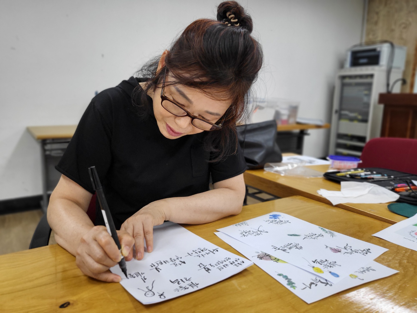 핸즈온 자원봉사 리더 전순환은 캘리그라피 봉사자들과 함께