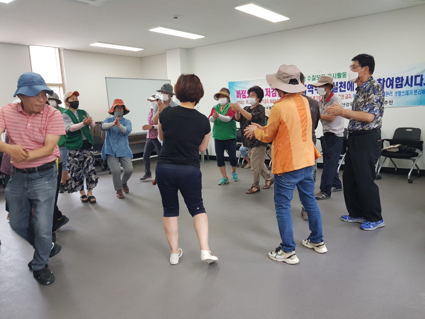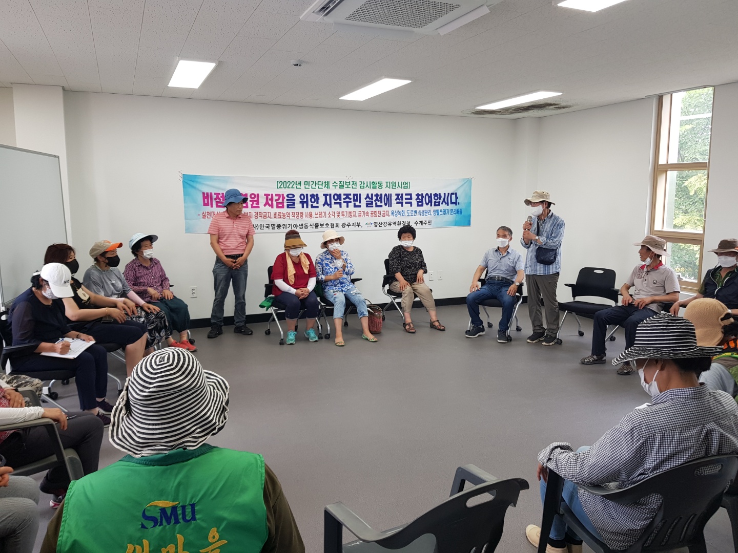 주민들과 함께 대촌동에 모여 수·생태 환경교육 후