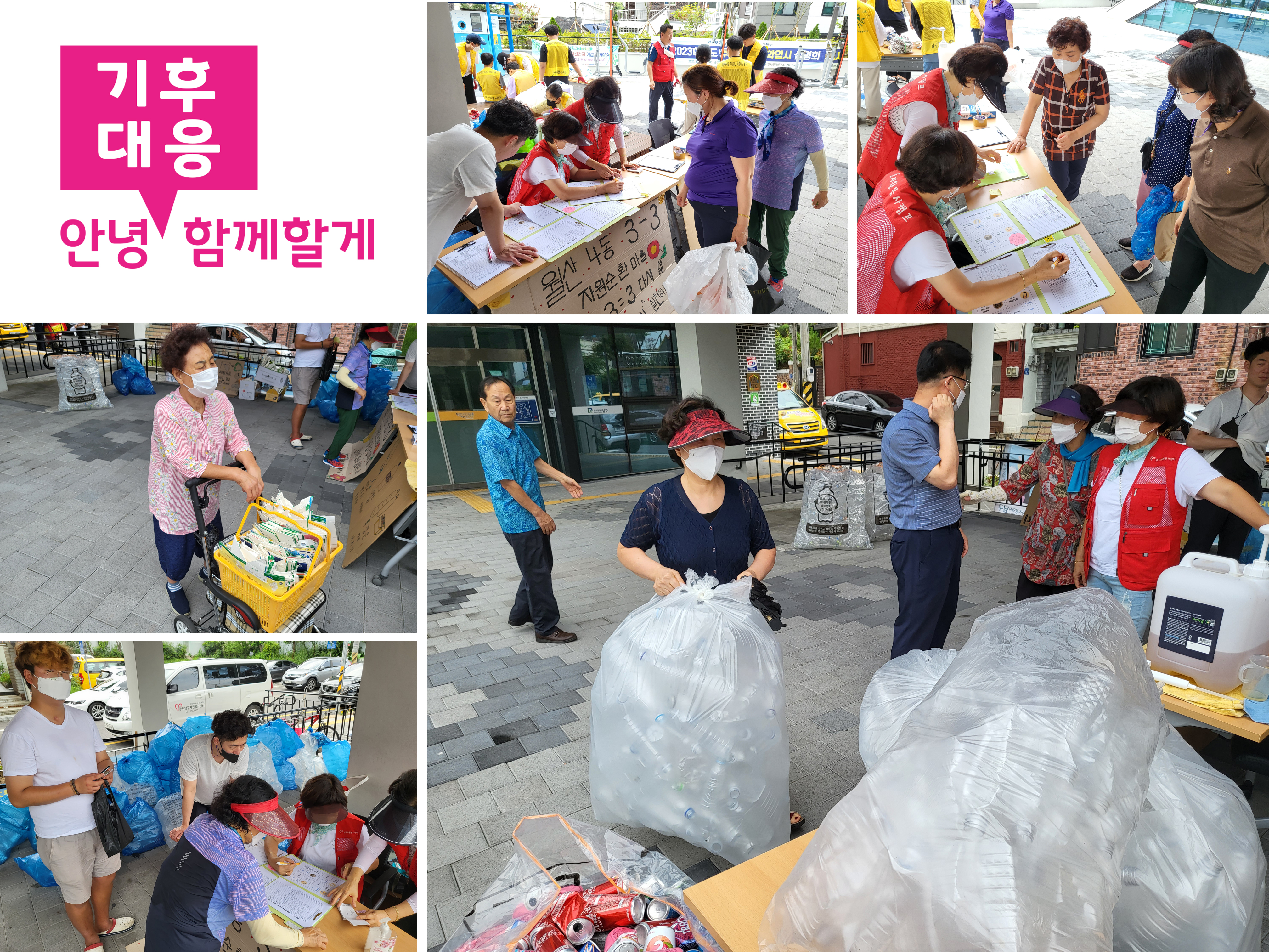 투명페트병, 음료캔, 우유팩을 가져오는 주민들에게