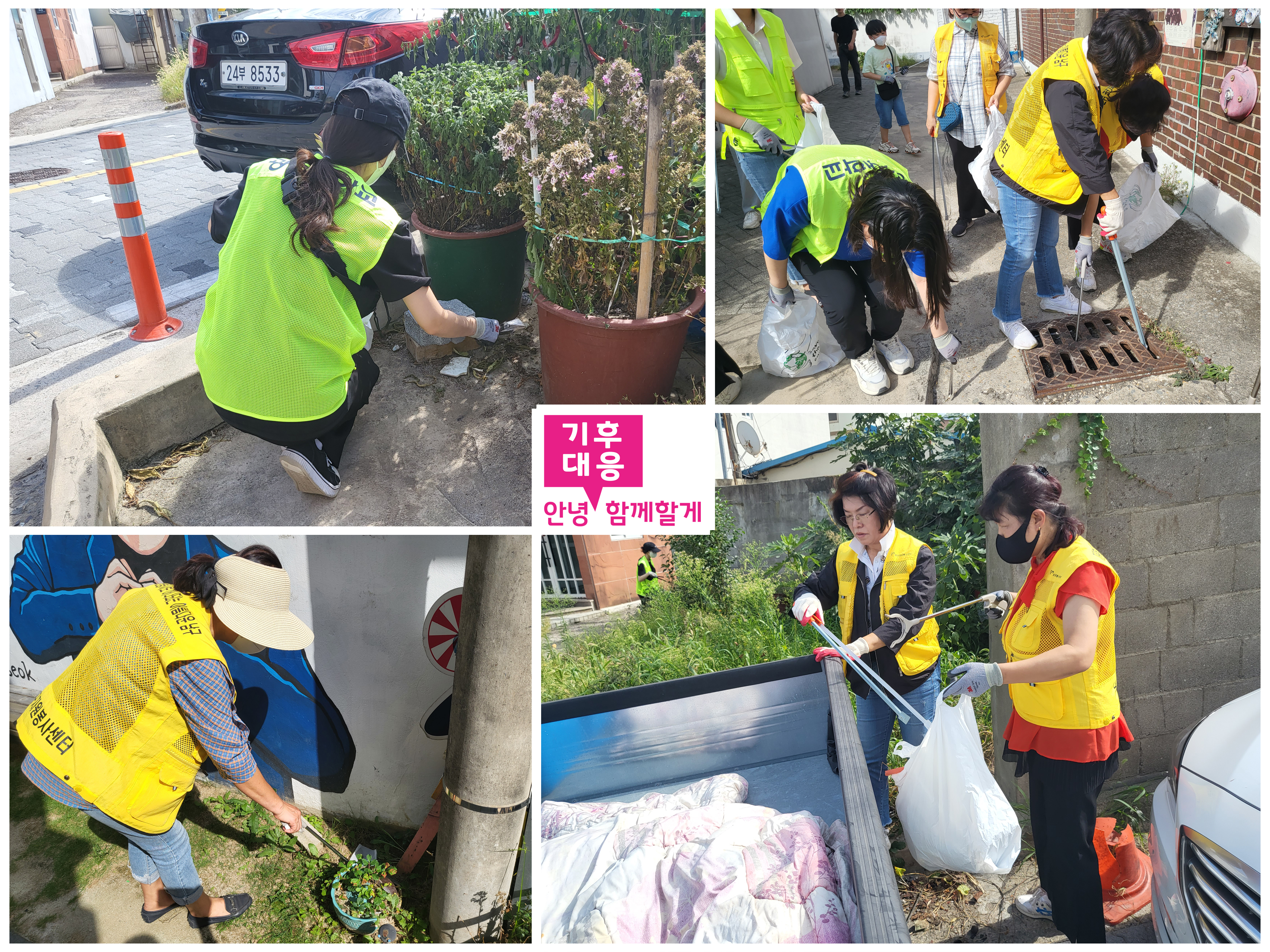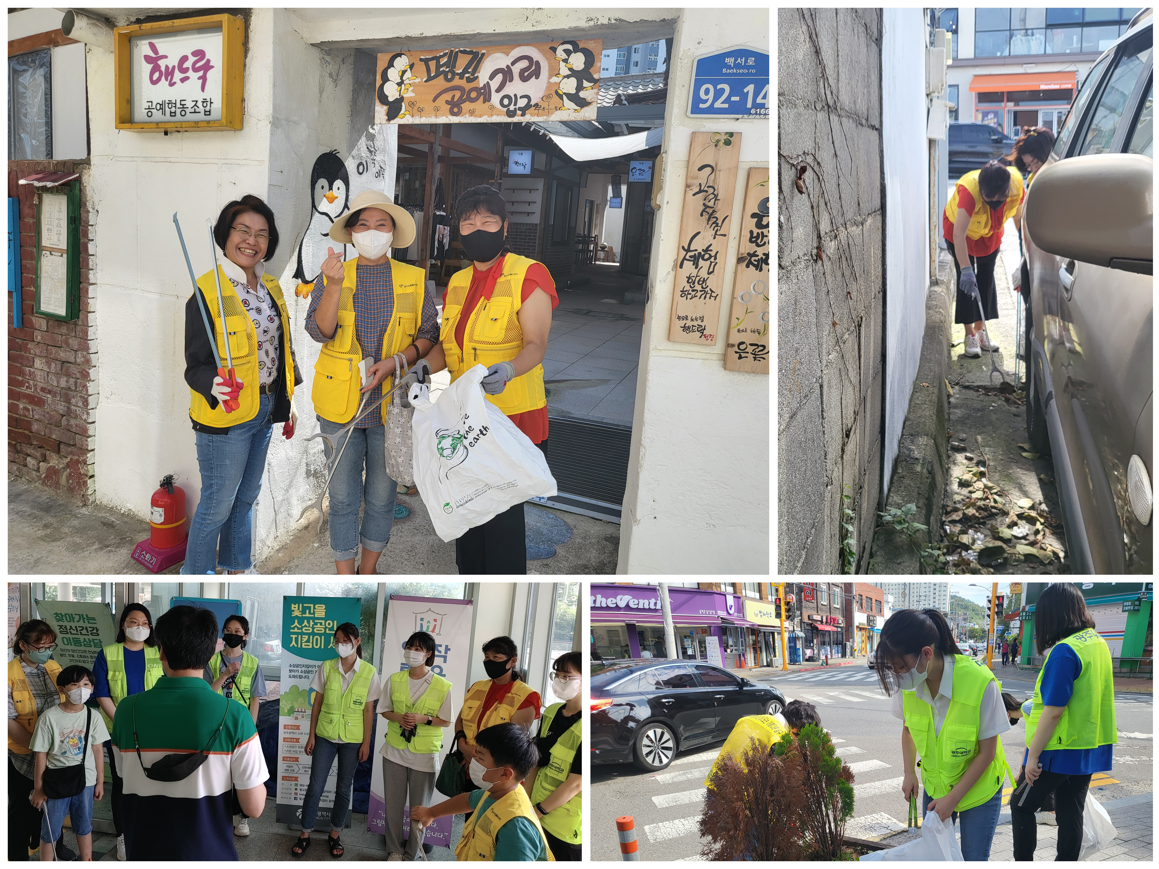 펭귄마을 골목 곳곳에서 플로깅을 진행하며