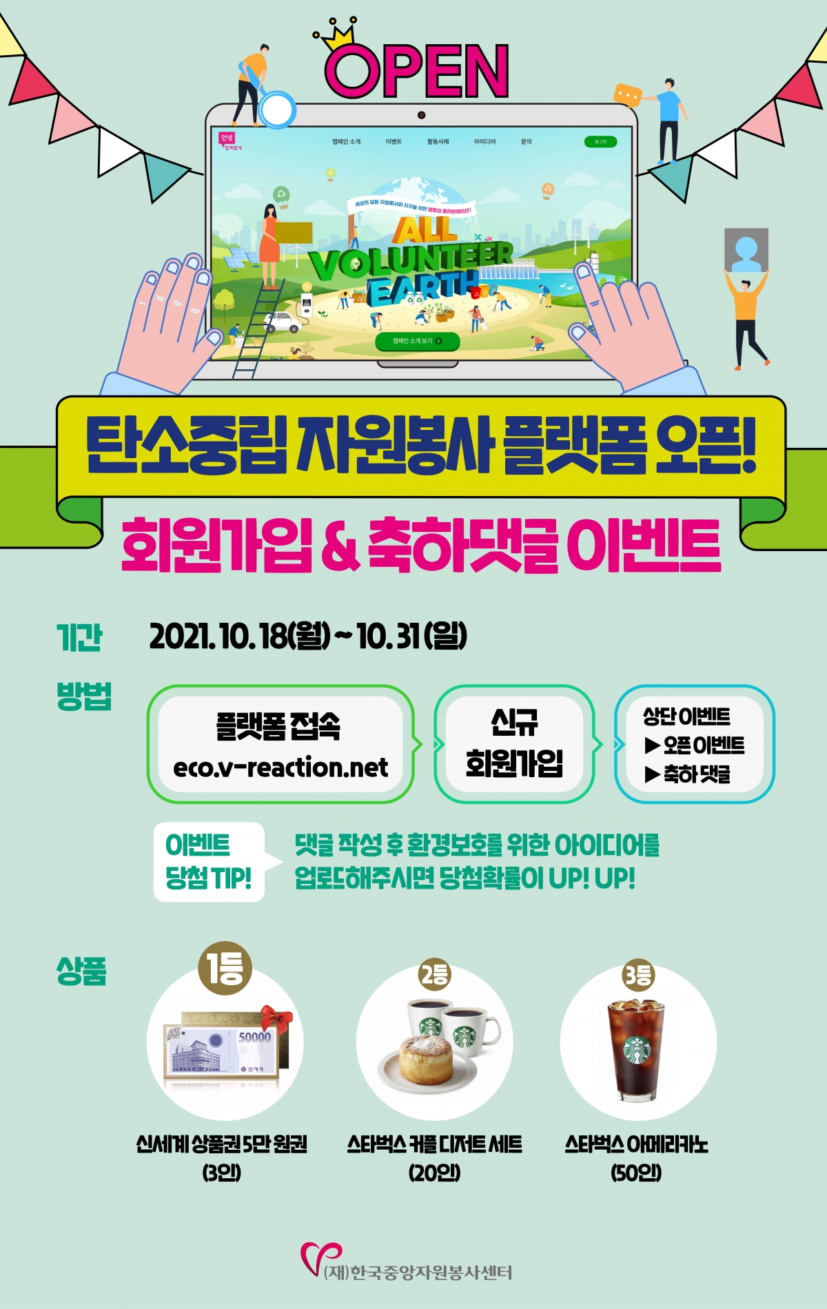 탄소중립 자원봉사 플랫폼 오픈을 축하합니다.