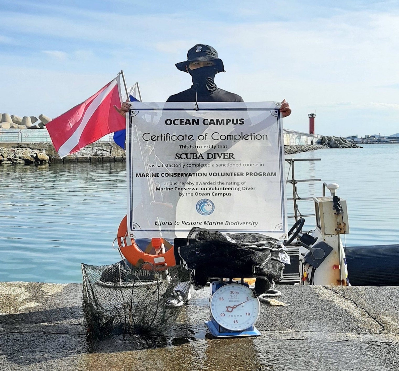 갯녹음 해결을 위한 작은 노력 뿐만 아니라, 수중 작업을 진행하면서 바다에 버려진 폐어구, 생활쓰레기 등을 수거하며 해양 환경을 정화하는 것에 일조하고 있습니다.