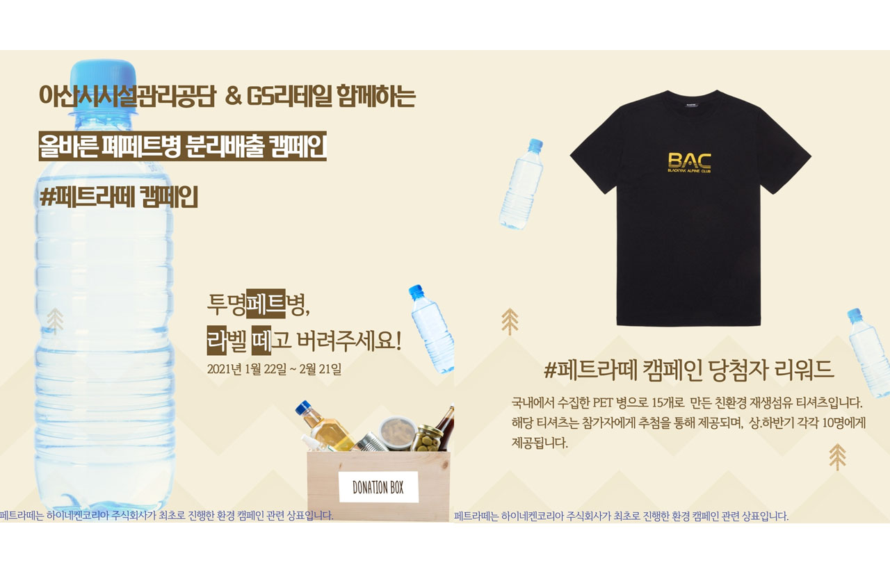 2021년 11월 ~ 12월 아산시시설관리공단과 GS리테일 협력 체계 구축, ‘페트라떼’ 진행 예정입니다.