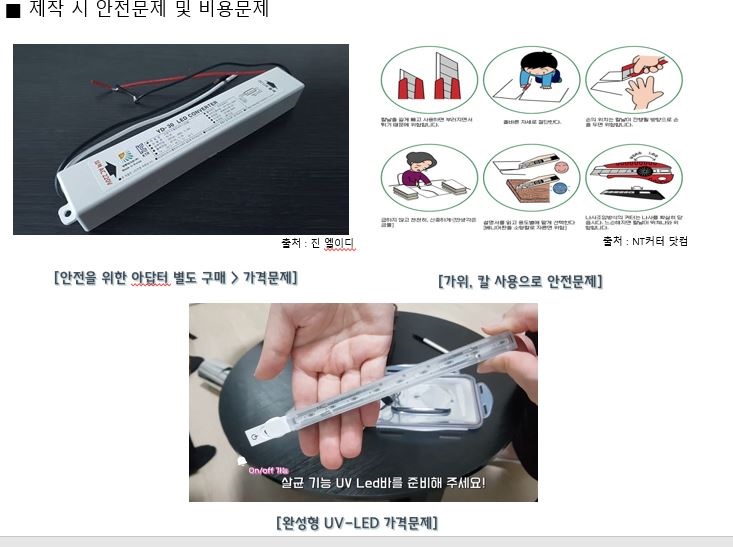2. 실제 살균효과 입증을 받은 제품이 없어 UV-LED 완제품 선택할 경우 가격대가 비쌈.