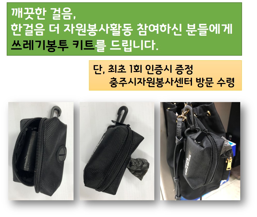그리고, 최초 1회 참여하신 분들에게는 쓰레기봉투 키트를 제작하여 드림으로써 일상생활 속에서 쓰레기 줍기를 당부 드렸습니다.
