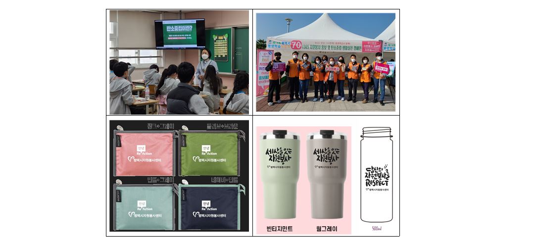- 센터의 홍보물품도 탄소중립을 반영한 물품들로 다양하게 제작하여 참여자들에게 제공