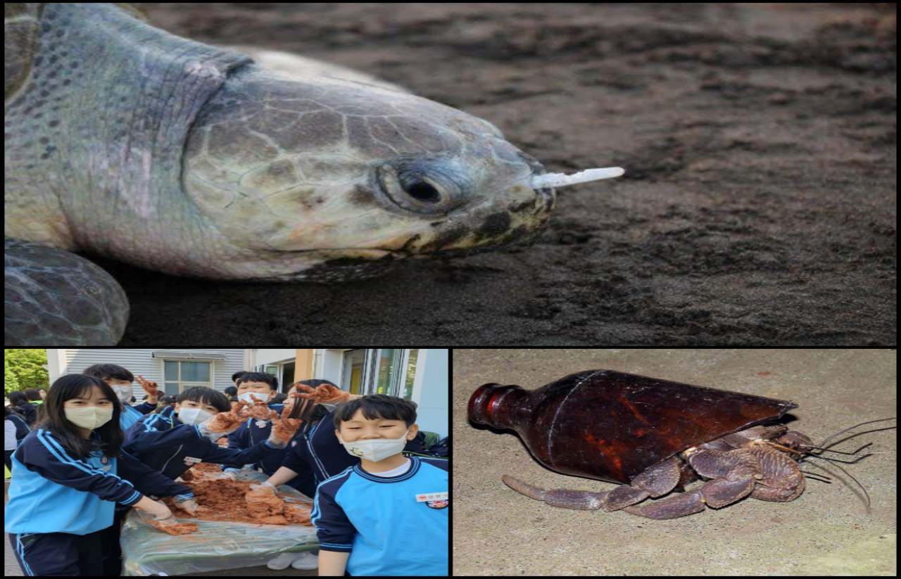 저희 학교는 올해 탄소중립 시범학교로 지정이 되어 다양한 기후 환경 생태 교육을 하고 있고 그러한 활동에 대해 실천을 권장 하고 있습니다. 지구의 날, 환경의 날 캠페인 EM 흙공 만들기 등 다양한 활동을 하면서 그렇게 기후, 환경과 탄소중립이라는 단어에 대해 익숙해 지고 조금씩 알아가던 어느 날 수업 시간에 환경오염으로 코에 빨대가 꽂혀 피 흘리며 아파하는 거북이를 보면서 우리가 실천할 수 있는 활동에는 어떤 것들이 있을까? 라는 고민을 같이 하게 되었습니다.