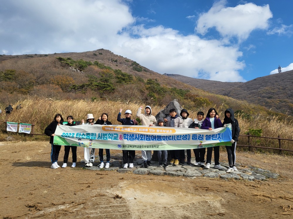 학교에서 벗어나 저희들의 활동 영역을 크게 넓힌 네 번째 발자국. 지금까지 실천해온 다양한 활동과 경험을 지역사회와 함께하는 시간을 가졌습니다. 학교에서 탄소제로 한마당이라는 탄소 중립 실천활동을 알리는 다양한 부스 운영을 하였습니다. 그 중에 가장 인기가 있던 업사이클링 병뚜껑 마그넷 만들기 활동을 광주 협치 한마당에서도 부스 운영을 하였습니다. 저희들의 활동이 인기가 있었을까요? 유일하게 동일한 활동을 2개의 부스를 운영하며 플라스틱 사용을 줄이고 자원을 재사용하는 업사이클링을 널리널리 알릴 수 있었습니다. 지역사회와 함께하기 위해서는 저희들의 발자국들을 많이 많이 알릴 필요가 있다고 생각하여 우직한 발표회, 우직한 한마당의 발표자리에 두 번이나 자리에 서서 많은 분들에게 활동 내용을 공유할 수 있어 뜻 깊었던 시간이었습니다. 마지막 방점은 가족과 시민들과 함께하는 줍깅 4탄 무등산 줍깅이었습니다. 광주를 대표하는 무등산을 가족들과 함께하고 또한 시민들과 함께 하면서 우리의 발자국을 널리널리 알릴 수 있었습니다.